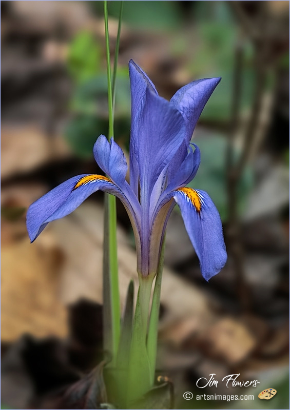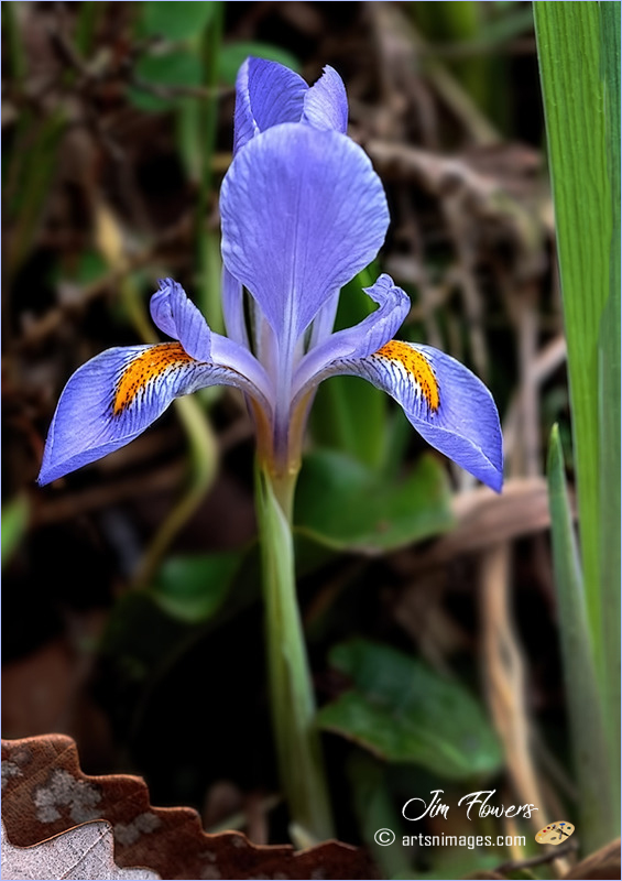 Photographing the Iris Verna in full bloom is a “luck by chance” affair. The tiny blooms are extremely delicate and susceptible to nature’s elements and even a slight bit of precipitation can foil their appearance and discolor the petals, so you have to catch them at “just the right time”, shortly after the bloom is in full and before any rain.