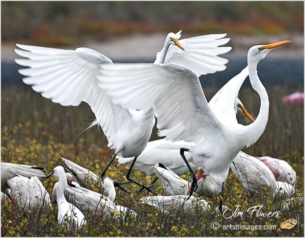 Great Egrets “sparring”, West Galveston Island,